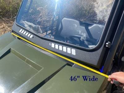 This is a great windshield for your Mid-Size/2-Seat Ranger. The glass is laminated safety glass, the same as many automotive windshields. The powder coated metal frame is made from 14 gauge Galvanealed steel. The removable vents let is just enough airflow to help prevent some vacuum while keeping the wind off of you. The DOT rating is etched into the glass. The hand operated driver's side wiper comes in handy on rainy days although we do offer an optional Electric Washer/Wiper.