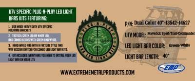 Can-Am Maverick Sport/Trail/Commander DUAL COLOR 40" LED Light Bar Kit (Plug and Play) Green and White