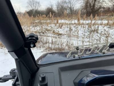 Made from Hard Coated AR2 Polycarbonate, so it is much more scratch resistant than others, and will hold up well to standard use. Polycarbonate is virtually unbreakable. Made to specifically for the UForce 1000, ensuring a great fit. Attaches with custom fabricated brackets with thumbscrews, so that you can easily remove your windshield without any tools. Gasketed on all sides.
