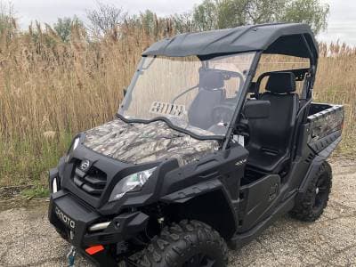 CF Moto Uforce Hard-Coated Polycarbonate windshield with sliding vent.