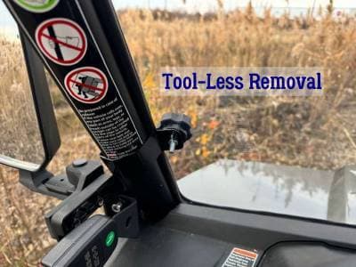 Made from Hard Coated AR2 Polycarbonate, so it is much more scratch resistant than others, and will hold up well to standard use. Polycarbonate is virtually unbreakable. Made to specifically for the UForce 600, ensuring a great fit. Attaches with custom fabricated brackets with thumbscrews, so that you can easily remove your windshield without any tools. Gasketed on all sides.