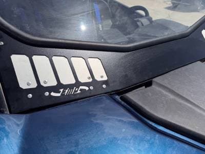 The CFMOTO Z-Force Laminated Glass Windshield features components that are either American-made or sourced, ensuring high quality. Its robust frame secures the laminated glass with extruded rubber, complemented by safety brackets that provide additional stability. Unlike polycarbonate options, this windshield utilizes automotive-grade glass, making it resistant to scratches. For enhanced comfort on warm days, magnetic latching vents facilitate airflow, while a hand-operated wiper ensures clear visibility during inclement weather.