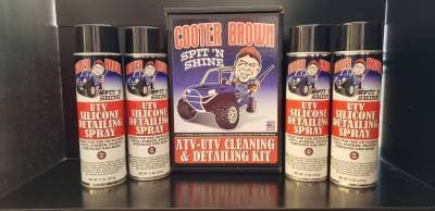 Cooter Brown Spit'N Shine UTV Silicone Detailing Spray is a coating that provides a water-resistant, high gloss shine. This product protects, preserves, and renews vinyl and rubber, plastic body panels and painted surfaces. Developed for the people who want to keep their UTV looking good on and off the trail. Pick up a can and give your ride that showroom new look!