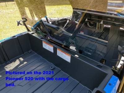 Fits: 2015-24 Honda Pioneer 500 and 2021-25 Pioneer 520 (Note: when installing on the 520 it is a tight fit behind the dump bed. The bed will slightly rub on the cab back when the bed starts to dump)