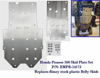 Upgrade your factory plastic skid plates with these rugged 3/16" thick aluminum skid plates. Designed as near-direct replacements for the original two-piece plastic skids, they install easily using your stock hardware or the included mounting hardware.