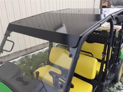 Protect the driver and passengers from rain, sun and snow with this stylish aluminum top. Rain gutters on the front and back divert water to the sides. Rubber coated straps and foam strips protect your cage and prevent rattling.