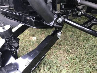 Our plow mounting system mounts to the front and underside of the UTV with the supplied hardware. The mount can easily be removed at the end of the season with six bolts. The plow attaches in less than a minute with the supplied hitch pins.