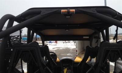 Shields the driver and passengers from rain, snow, sun, and other elements. Easily attaches to your cage using rubber-coated mounting hardware. Precision laser-cut and CNC-formed for a perfect, consistent fit. Designed in two pieces to enable UPS shipping directly to your door. Equipped with two LED dome lights that illuminate the passenger area at night. A gasket seal ensures a tight fit between the front and rear sections.