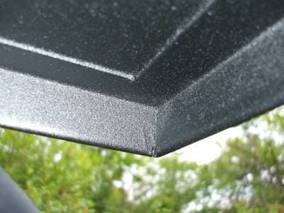 The edges are folded over twice, making a 1/8" thick angle around the outside edges. This makes for a very durable top. The top mounts to the cage with the clamps pictured. Once you have the clamps installed you can easily remove the top by simply removing four screws and the clamps remain securely on your rail cage, ready for your top to be installed again.