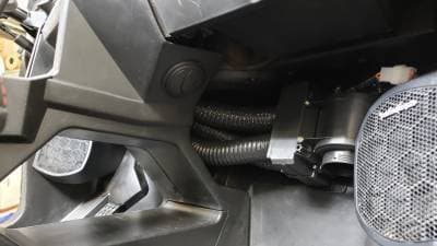 Use your cooling system to heat your cab! The new and improved Compact UTV Under Dash Cab Heater kit has 6 vents- 2x center area vents, 2x lower dash and 2x defrost vents. The Under Dash Heater fits completely up in behind the right side of the dash. This kit comes with a compact yet powerful heater with a three-speed fan which will deliver heat from the 14,600 BTU* Compact Heater Unit. Adjustable louvers direct the heat where you need it. Two 2" vents mount on each side of the dash top to defrost the windshield, two 2” vents mount in the center dash panel and two 3” vents mount in the lower dash area. Kit is also available with optional in-dash Heat Control (shown in the dash vent picture). A unique feature of this kit is that the heater intake comes from inside the cab where the air is cleaner and warmer. Warmer air means more available heat for you inside the cab. Kits are supplied with custom CNC made alloy Y connectors that connect directly to the engine's cooling system for fast heat (not required but we recommend the use of the MaxStat for the 1000 models). Kits also include custom CNC laser cut mounting brackets, heater hoses and duct hoses, hose clamps, new and improved vents, hole saws (for the heater hoses and vents), grommets, switch, wiring loom, and terminals included, templates, your specific mounting bracket with hardware and instructions. Please Note: New Updated Speed and Heat Control Switches.