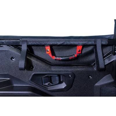Pinned Mounting System- allows the door to be quickly separated and removed without the need to open up the OEM lower door panel. Reduced Installation Time-Less hardware and less holes drilled into the OEM lower door body panels. Upper Frame Locking Handle-Secures the upper door to the vehicle’s ROPS for trailering and riding. Less Drilling-Now requires only 2 holes drilled into the lower body panels.