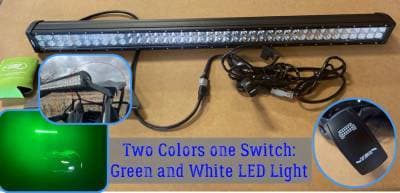 If this is the kit you've been waiting for you wait is over. It includes everything you need to install a Quality DUAL Color, DUAL ROW, Combo Beam LED Light Bar to your Xpedition. Click the switch once for a Green Light (Great for night riding and hunting) click it again for a Brite White Light. The switch matches the factory Rocker Switch cutouts in the dash and the it wires to the factory plug under the hood.