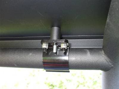 The edges are hemmed over twice forming a double flange. In other words, we have formed a 1 x 1 x 1/8 inch thick angle around all the edges making it very strong but lighter. The top attaches with our Quick Connect Clamps making it very easy to remove after you have installed the clamps. Simply, remove the bolts and the clamps remain on your ROPS. This top has been engineered so that it will break down for UPS shipping- It ships in three boxes to your door, unlike others that have to ship on a skid to a loading dock.