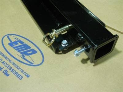 The weld nut and bolt are on the side, allowing you to tighten the receiver after the hitch pin is installed, reducing any rattling or movement.