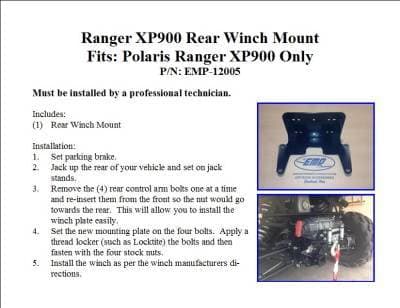 Polaris Ranger XP900 and Full Size Range 570 Rear Winch Mount