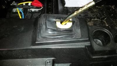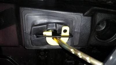 Note: Minor trimming of the rubber shift boot is required (as shown). Not a concern—it’s an inexpensive, easily replaceable part (Polaris P/N 5414651).