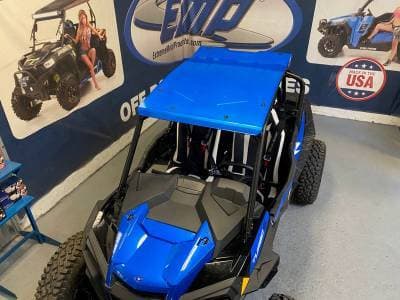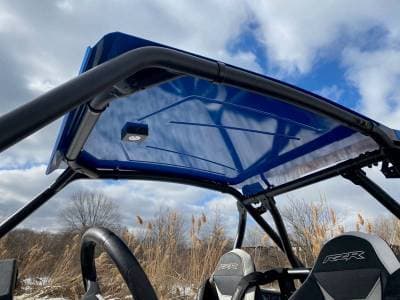 Protect yourself and the passenger from Rain and Sun with this “Rally” style aluminum top. It is fabricated from nearly 1/8” thick Aircraft Grade Aluminum. The LED Dome light runs up to 100 hours on the batteries provided. The top extends to the sides to protect your shoulders from rain. Installs in minutes with Rubber Coated Straps and hardware provided. Several color choices available.