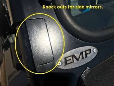 This is a great windshield for the RZR Turbo or XP1000. The glass is laminated safety glass, the same as many automotive windshields. The powder coated metal frame is made from 14 gauge steel. It will fit with the factory top pictured and many other aftermarket tops. The louvers along the bottom let is just enough airflow to help prevent some vacuum while keeping the wind off of you. Also, as with most EMP windshields it comes with our "Quick Connect Windshield Clamps" so removing your windshield is as simple as removing four thumbscrews.