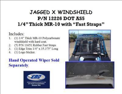 Made from 1/4" thick MR-10 Hard Coated (both sides) Lexan (Polycarbonate). Our windshield attaches with rubber "Fast straps" so it can easily be removed in seconds without any tools. Rubber gasket protects and seals your hood. Does not crack like less expensive acrylic.