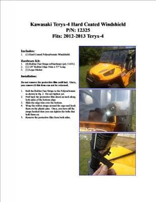 Kawasaki Teryx-2 (see fitment below) and Teryx-4 Hard Coated Full Windshield with Fast Straps