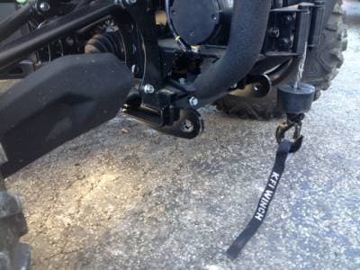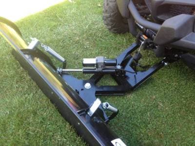 Our Viking mounting system mounts to the front and underside of the UTV with the supplied hardware. The mount can easily be removed at the end of the season with six bolts. The plow attaches in less than a minute with the supplied hitch pins.
